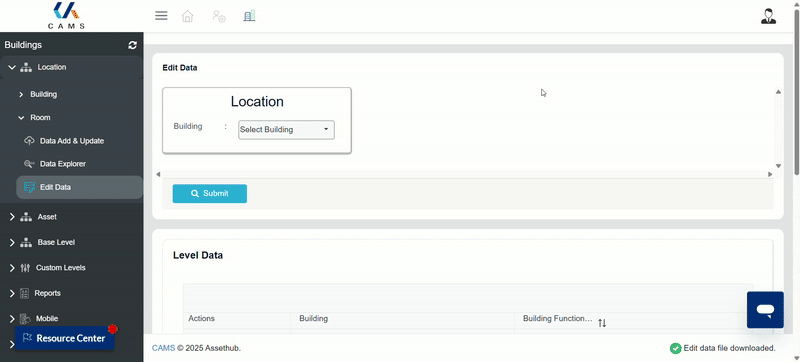 This article explains how users can edit hierarchy data (Building, Room, Component) in CAMS.