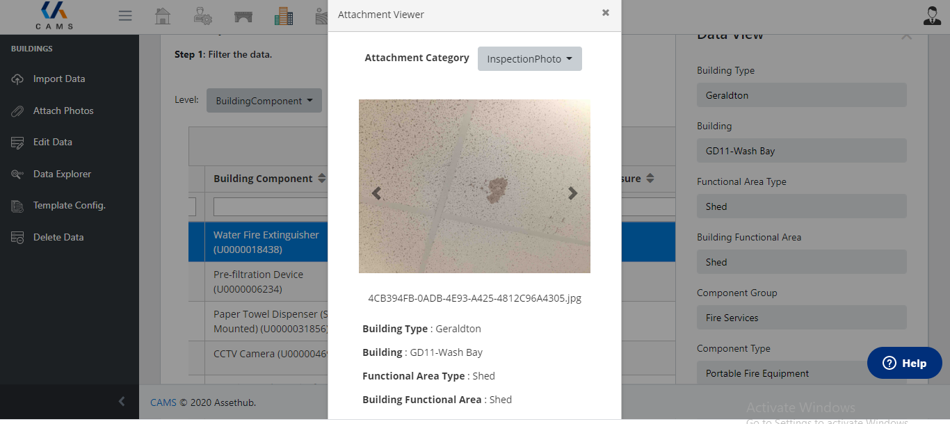 Photos can be uploaded to any level configured for your organisation. By default, images are uploaded at the Building level and Inspection level. The steps for uploading photos are the same across both categories.